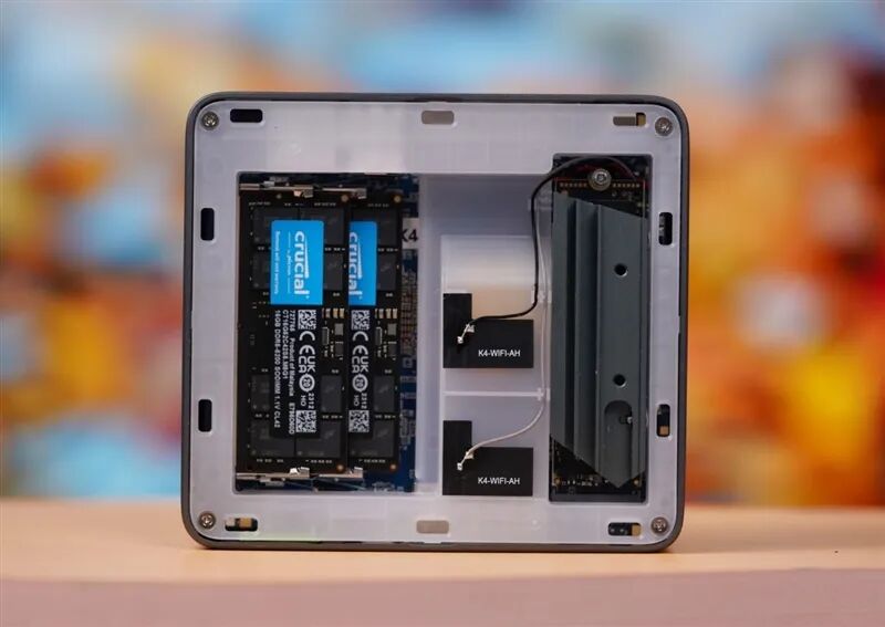 在扩展性能方面,极摩客K4有2个SO-DIMM DDR5插槽和一个M.2 2280插槽,SSD的扩展能力稍显不足。