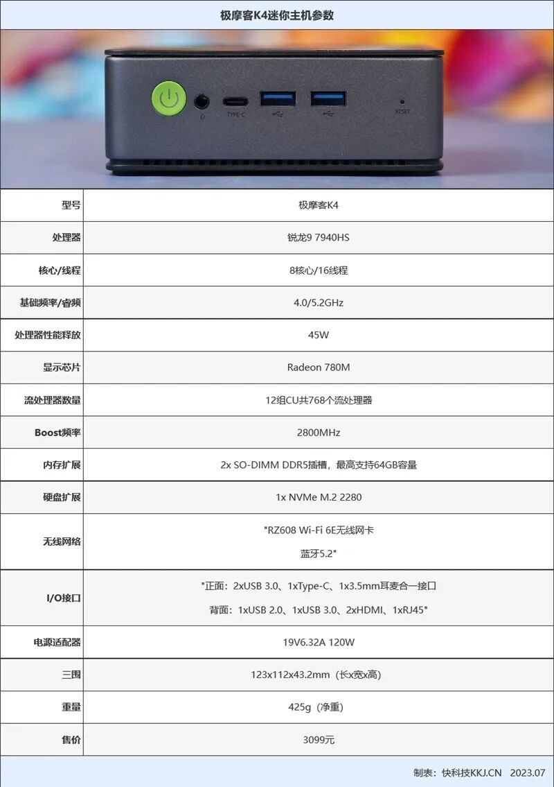 近期,我们快科技拿到了一台搭载锐龙9 7940HS的迷你主机,型号是极摩客K4。