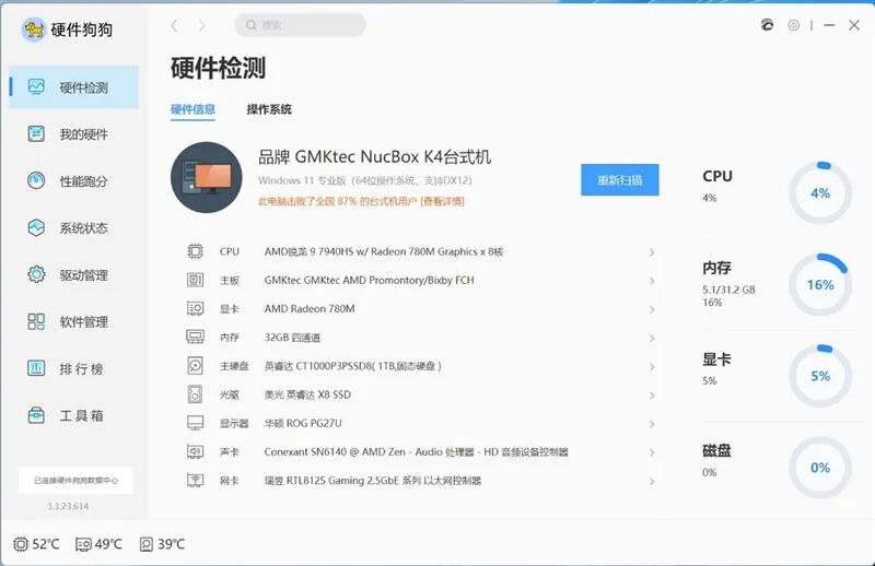 进入2023年,采用全新4nm制程工艺和Zen4构架的AMD 锐龙7000HS系列移动处理器全面上市,也让迷你主机的整体性能又上了一个台阶。